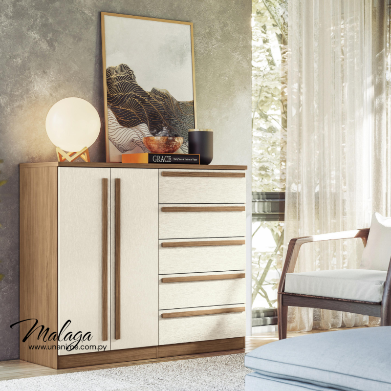La elegante Cómoda Málaga Gold destaca por su excepcional diseño y funcionalidad, con acabados de alta calidad que realzarán la apariencia de tu habitación de manera impresionante.