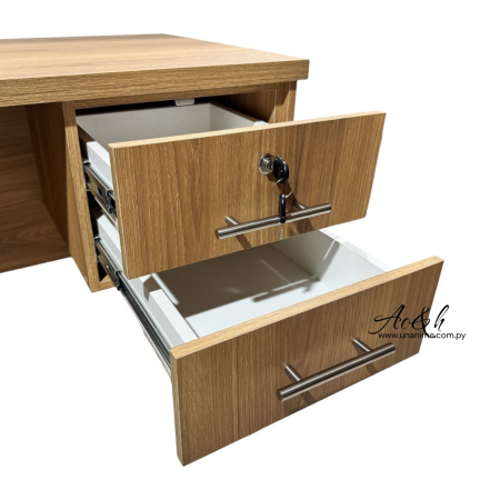 2 cajones funcionales, con cerradura y llave en el primer cajón.