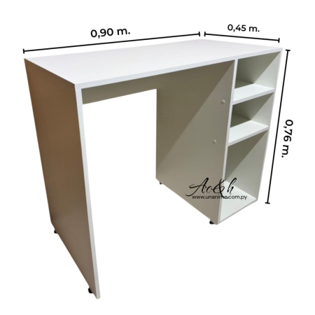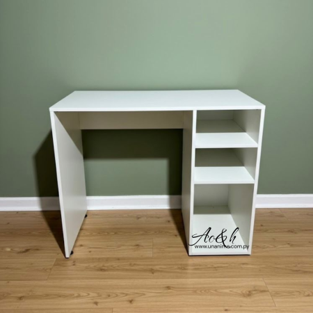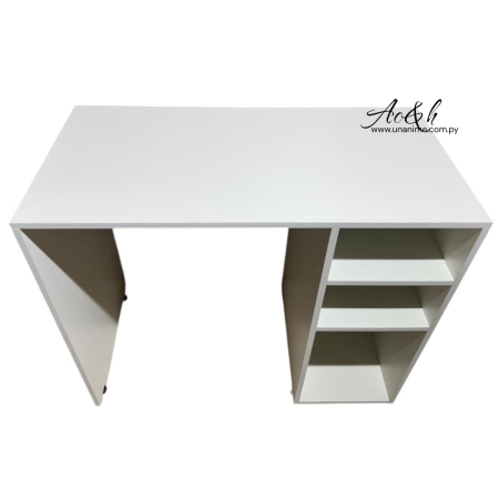 Práctico y elegante ideal para oficina o estudio. Diseño moderno en color blanco, con superficie amplia y resistente. Incorpora 2 repisas y 3 nichos , ofreciendo mayor organización en el día a día.