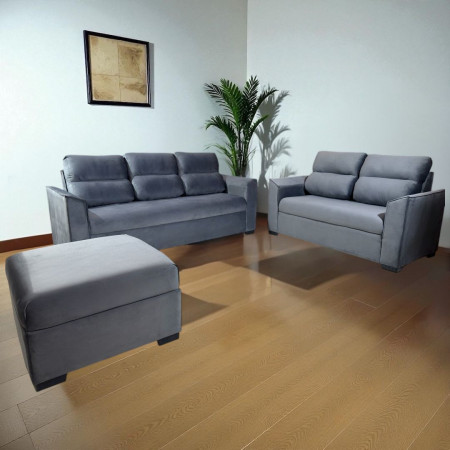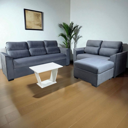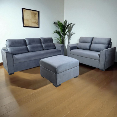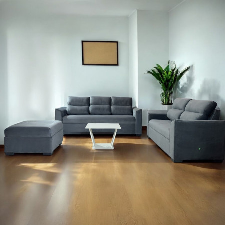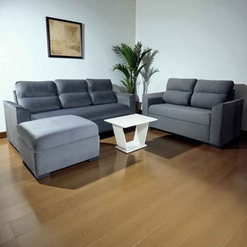 El sofá Piribebuy de 2L + 3L con puff es la pieza ideal para transformar tu espacio. Su diseño moderno con patas metálicas tipo L y su espuma de alta densidad aseguran comodidad duradera. El puff incluido añade versatilidad, sirviendo como reposapiés o mesa auxiliar, adaptándose a tus necesidades.