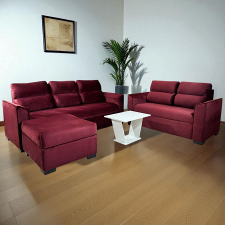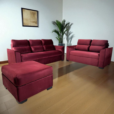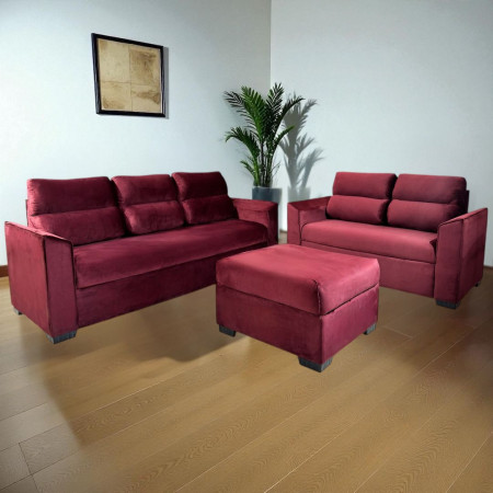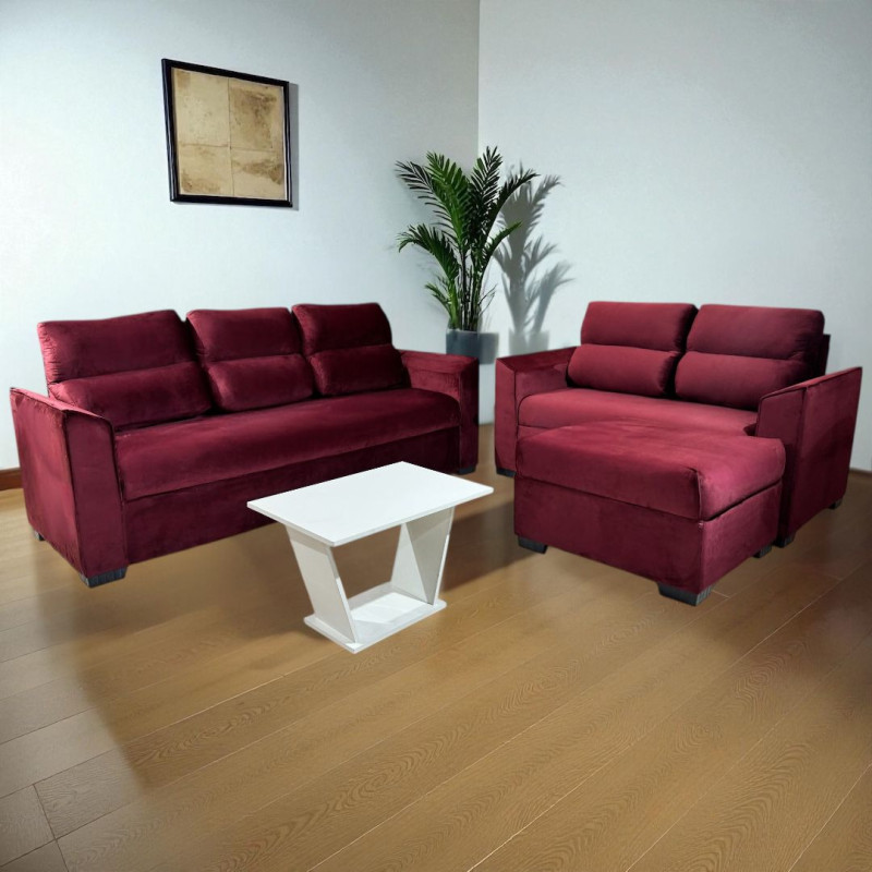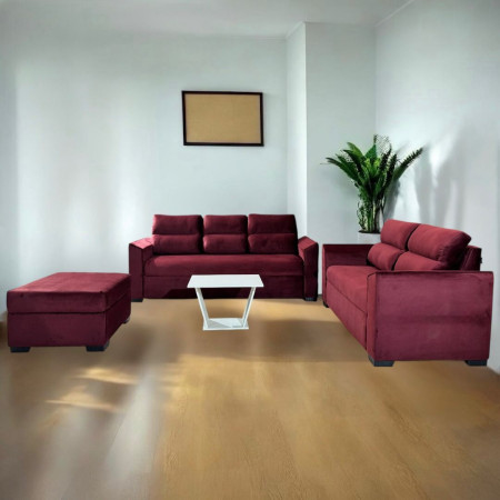 El sofá Piribebuy de 2L + 3L con puff es la pieza ideal para transformar tu espacio. Su diseño moderno con patas metálicas tipo L y su espuma de alta densidad aseguran comodidad duradera. El puff incluido añade versatilidad, sirviendo como reposapiés o mesa auxiliar, adaptándose a tus necesidades.