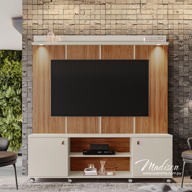 El Home Theater Madison 1.8 combina elegancia y funcionalidad con un diseño moderno, ideal para realzar la decoración de cualquier sala. Con espacio para televisores de hasta 70 pulgadas, iluminación LED, ofrece organización y estilo en un solo mueble.