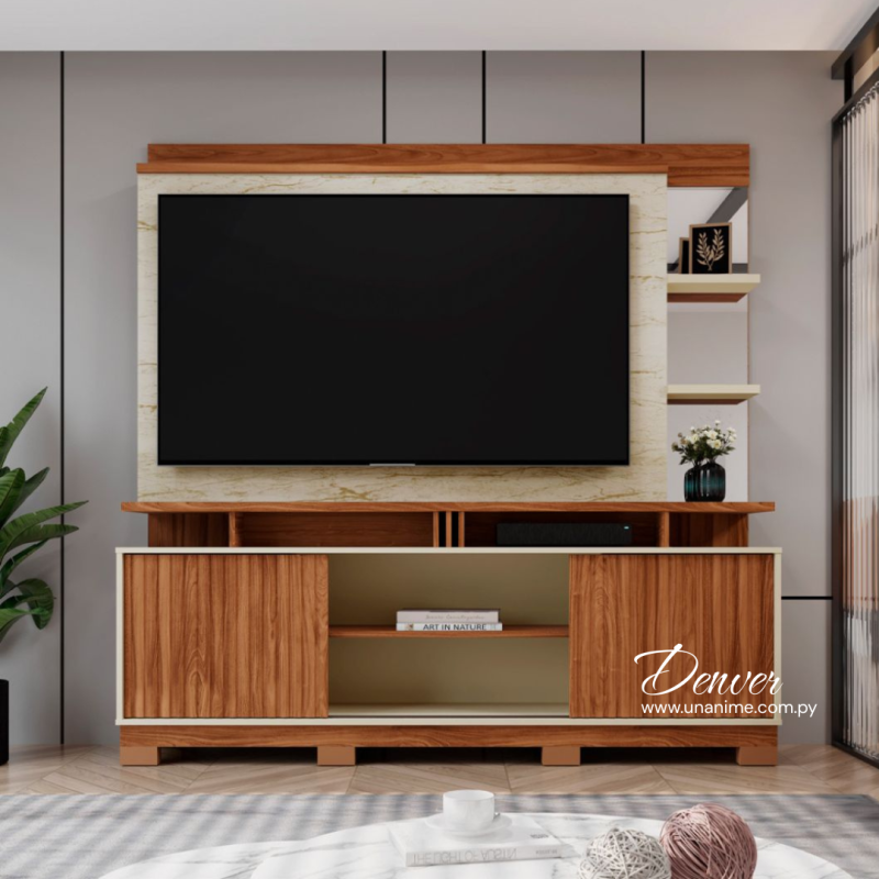 El Home Theater Denver es una opción versátil y elegante, ideal para espacios modernos gracias a su diseño flex que permite dos opciones de montaje de panel según tu preferencia. Este mueble combina funcionalidad y estética, ofreciendo repisas decorativas y almacenamiento organizado.
