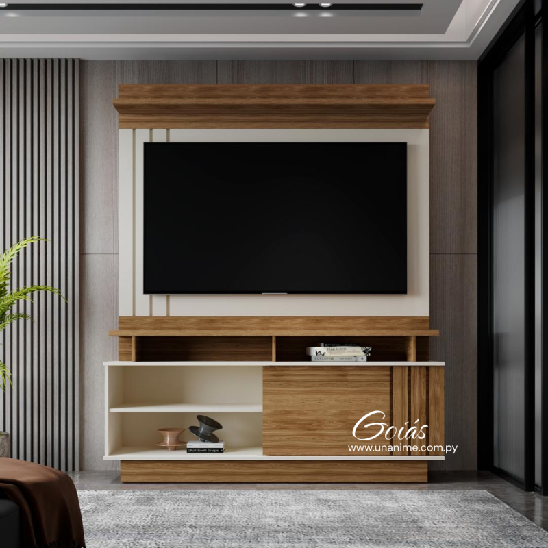 El Home Theater Goiás 1.5 es la opción ideal para quienes buscan estilo y funcionalidad en espacios compactos. Su diseño moderno incluye nichos decorativos, repisa superior y puerta deslizante que optimiza el almacenamiento sin perder elegancia.