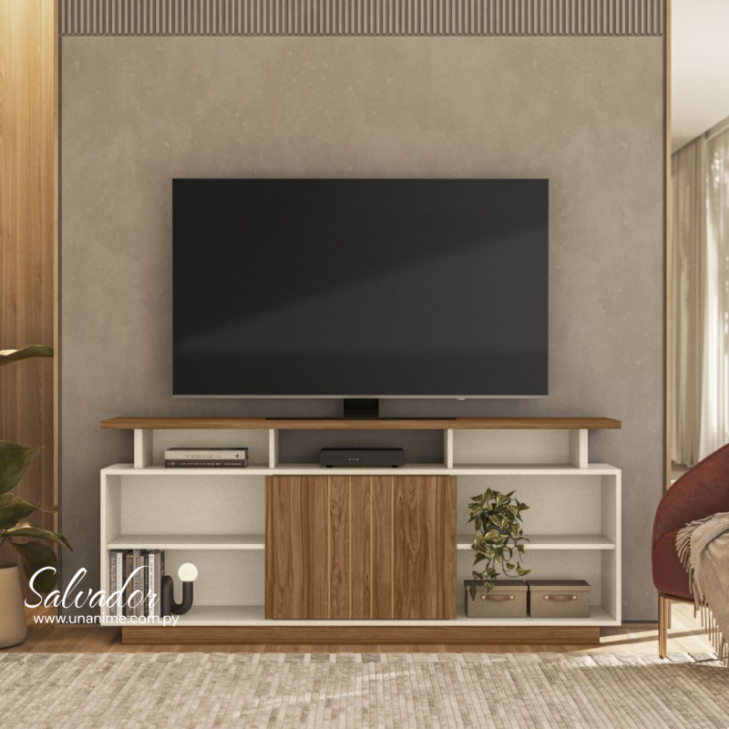 La Bancada Salvador 1.6 en color Amendoa/pérola metalizado es una excelente elección para quienes desean un mueble bajo elegante y funcional. Su diseño limpio combina tonos neutros con detalles en madera natural, ofreciendo un estilo contemporáneo y acogedor.