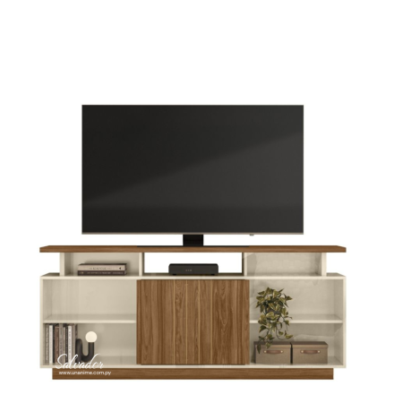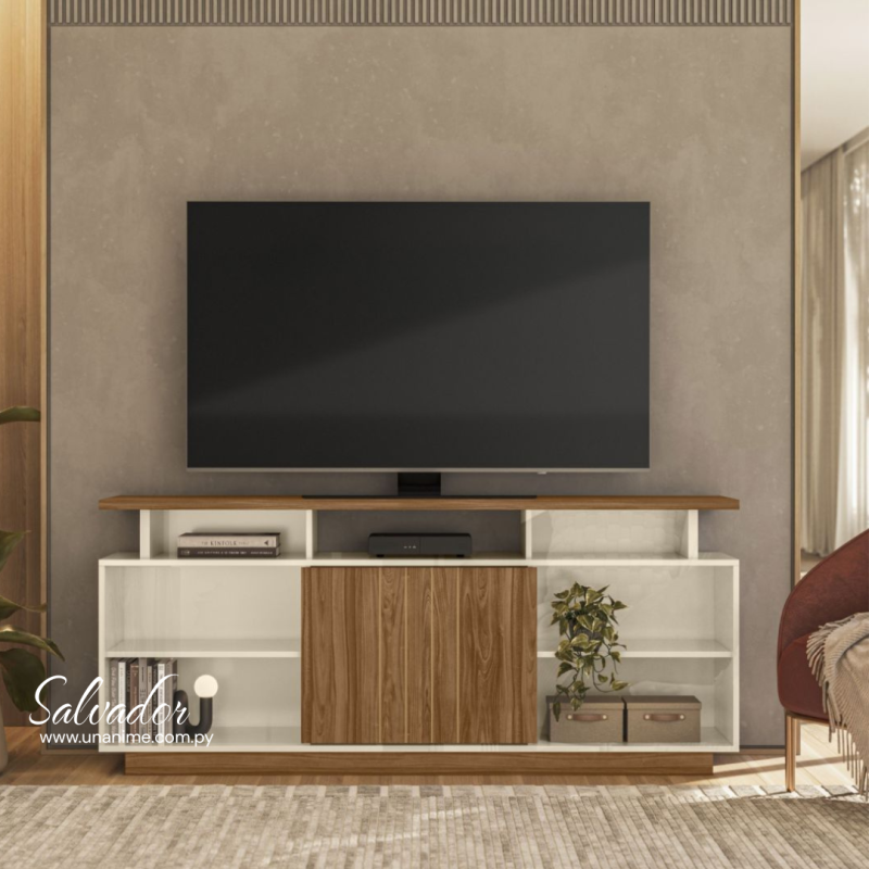 La Bancada Salvador 1.6 en color Amêndoa/Off White es una excelente elección para quienes desean un mueble bajo elegante y funcional. Su diseño limpio combina tonos neutros con detalles en madera natural, ofreciendo un estilo contemporáneo y acogedor.