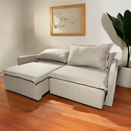 Elegancia y confort en un solo diseño. Fabricado con madera reforestada, espuma de alta densidad y almohadas con fibra siliconada que garantizan suavidad y durabilidad. Su tela lo hace práctico para el día a día, mientras que los asientos y respaldos retráctiles con precinta tipo italiana te ofrecen el máximo confort en cualquier momento.