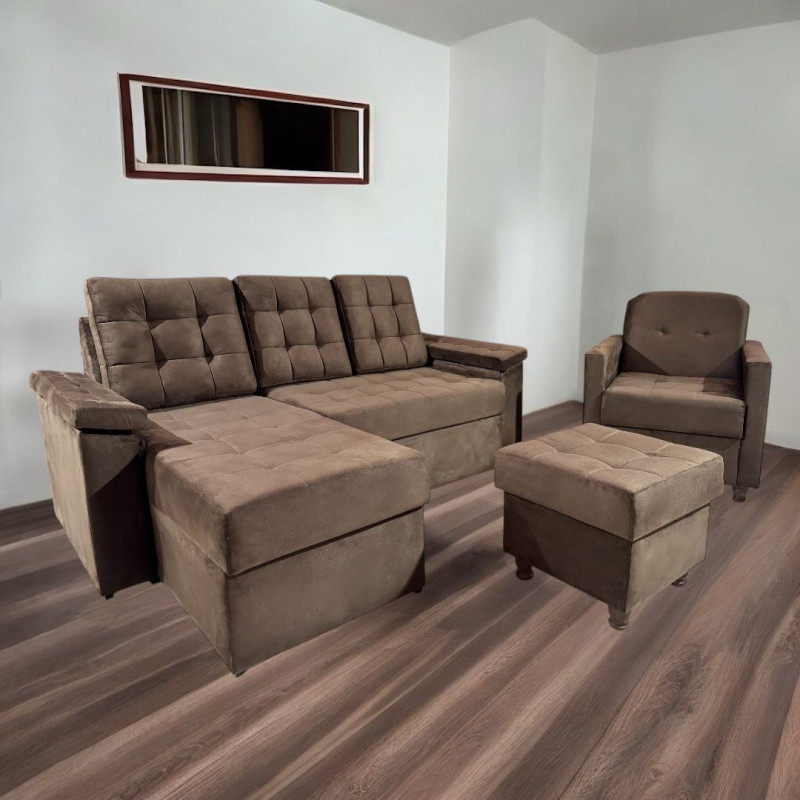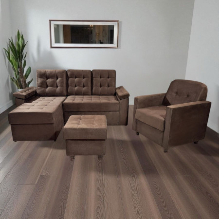 COMBO UNANIME YPANE MARRÓN + POLTRONA + PUFF