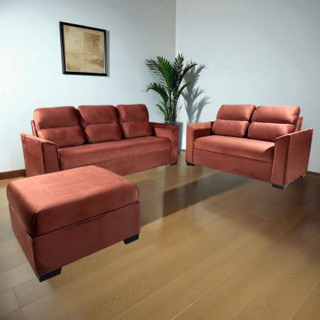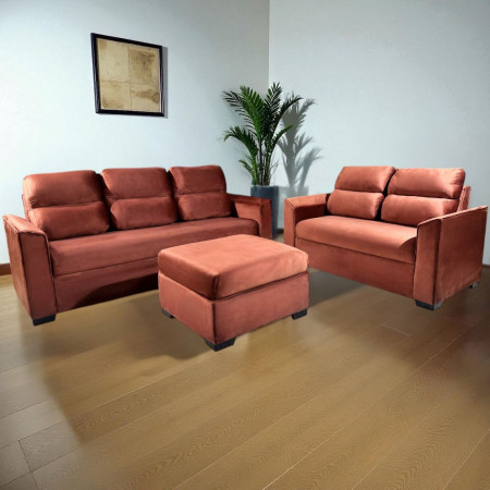 El sofá Piribebuy de 2L + 3L con puff es la pieza ideal para transformar tu espacio. Su diseño moderno con patas metálicas tipo L y su espuma de alta densidad aseguran comodidad duradera. El puff incluido añade versatilidad, sirviendo como reposapiés o mesa auxiliar, adaptándose a tus necesidades.