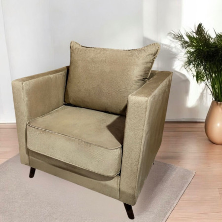 La poltrona San Ignacio combina elegancia y confort. Hecha de madera reforestada, cuenta con almohada de fibra siliconada y espuma de alta densidad. Sus patas de madera añaden un toque de distinción y durabilidad. Ideal para un hogar moderno y sostenible.