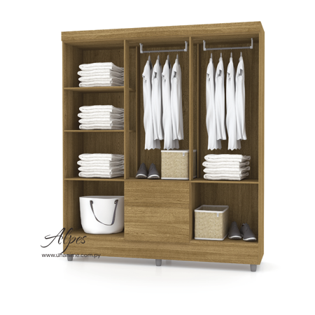 El Ropero Alpes es la solución perfecta para quienes buscan una organización eficiente y elegante en su hogar. Con un diseño moderno y funcional, este mueble optimiza el espacio y facilita el acceso a la ropa y accesorios.