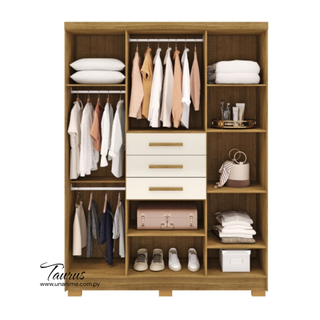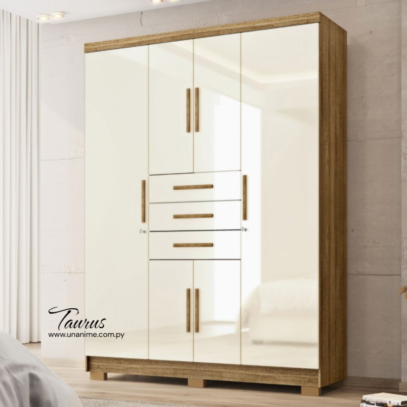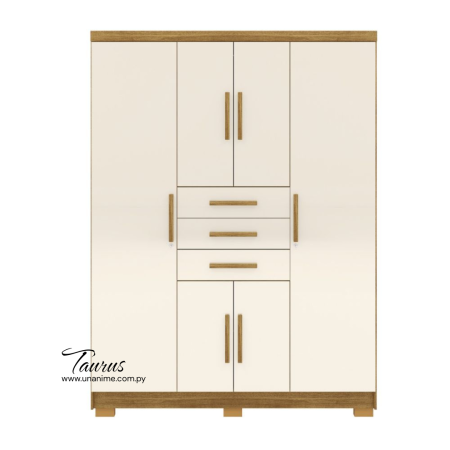 El ropero Taurus ofrece una solución perfecta para el almacenamiento en el hogar. Con puertas amplias y cajones centrales, proporciona espacio para ropa, accesorios y más, manteniendo todo en orden y a la vista.