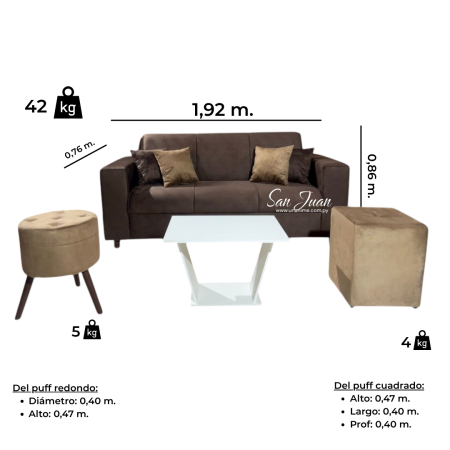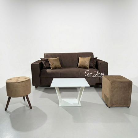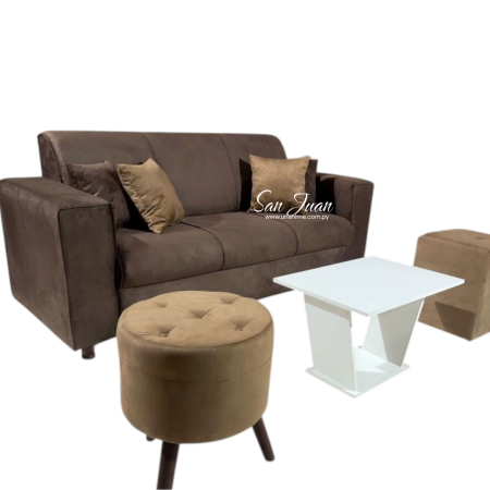 SOFA SAN JUAN 3 LUGARES + 2 PUFF MARRÓN