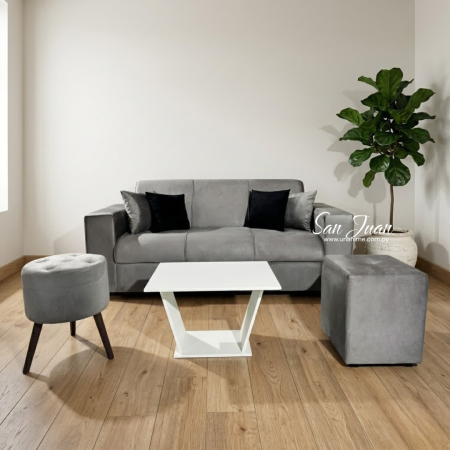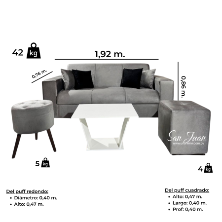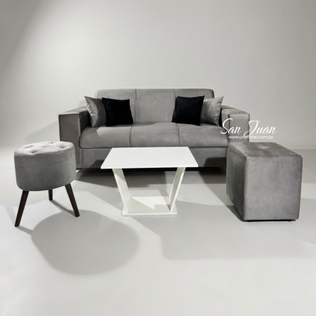 SOFA SAN JUAN 3 LUGARES + 2 PUFF GRIS