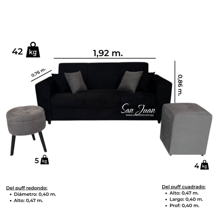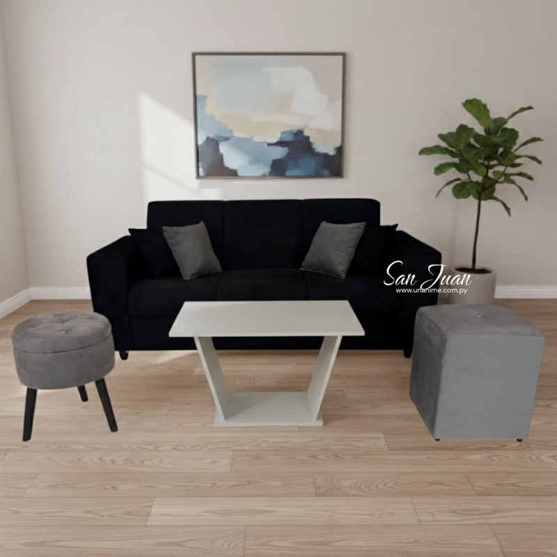 Presentamos el Sofá de 3 lugares + Puff San Juan, una combinación perfecta de estilo y comodidad para su hogar. Este elegante conjunto está diseñado con líneas modernas y acabados de alta calidad, ideal para cualquier sala de estar.