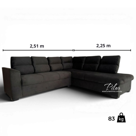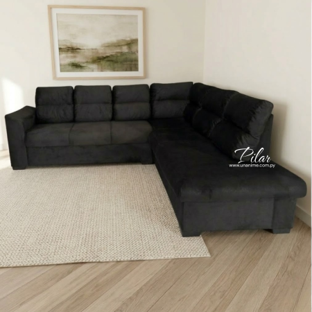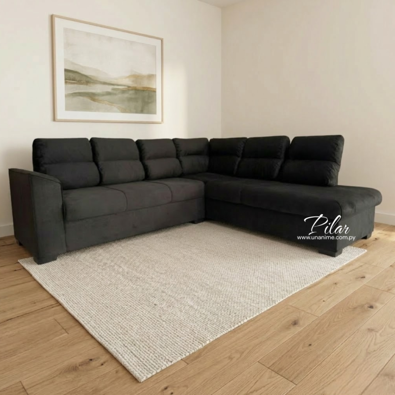 Te presentamos el Sofá Esquinero Pilar en color Negro, una opción ideal para transformar tu sala con estilo y comodidad. Espuma de Alta Densidad con patas de PVC que brindan estabilidad y diseño moderno, duraderas y fáciles de mantener. Y el diseño esquinero aprovecha el espacio de tu sala de manera eficiente, ofreciendo un lugar cómodo para toda la familia.