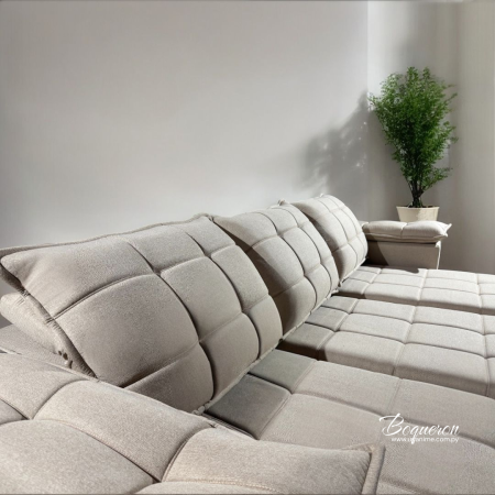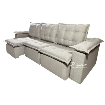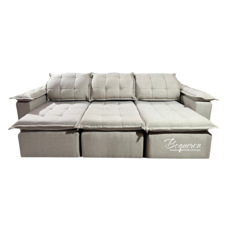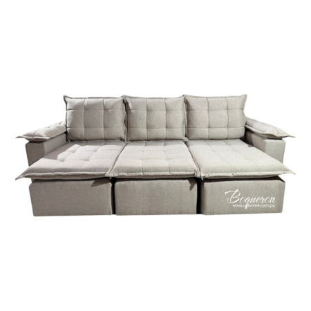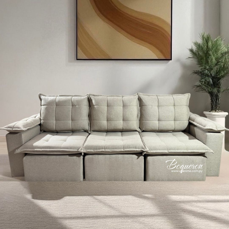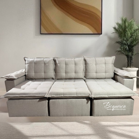 Elegancia, confort y versatilidad en un solo mueble. Tapizado de alta calidad con costuras acolchonadas. Asientos retráctiles. Perfecto para salas de estar, optimizando el espacio con su mecanismo ajustable.