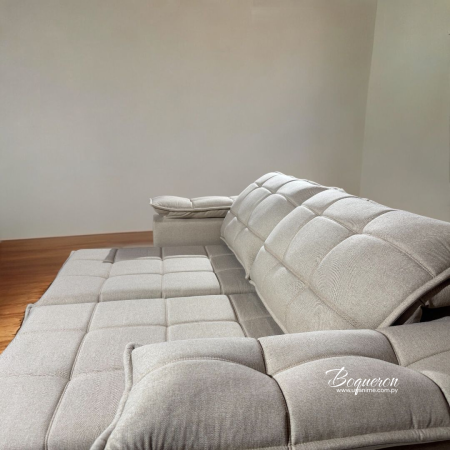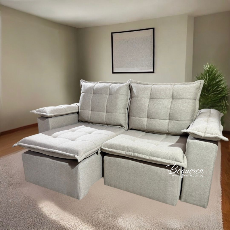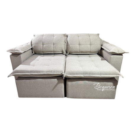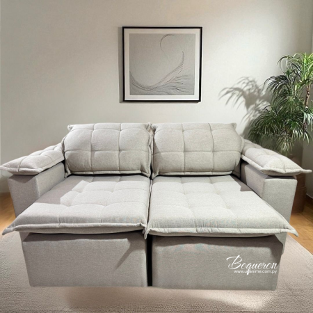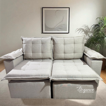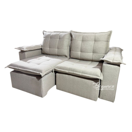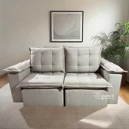 Elegancia, confort y versatilidad en un solo mueble. Tapizado de alta calidad con costuras acolchonadas. Asientos retráctiles. Perfecto para salas de estar, optimizando el espacio con su mecanismo ajustable.