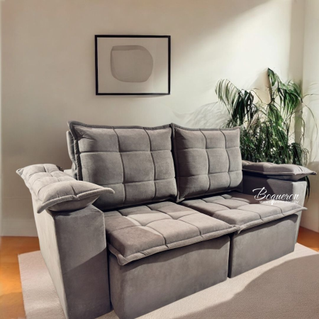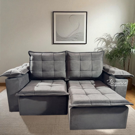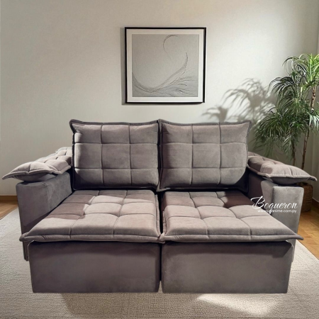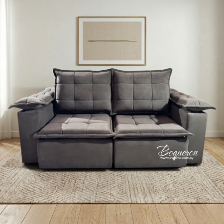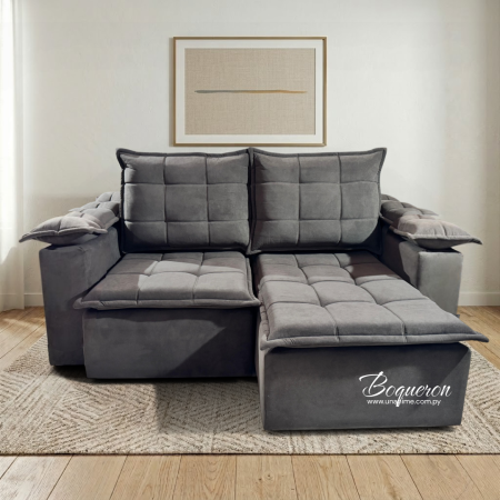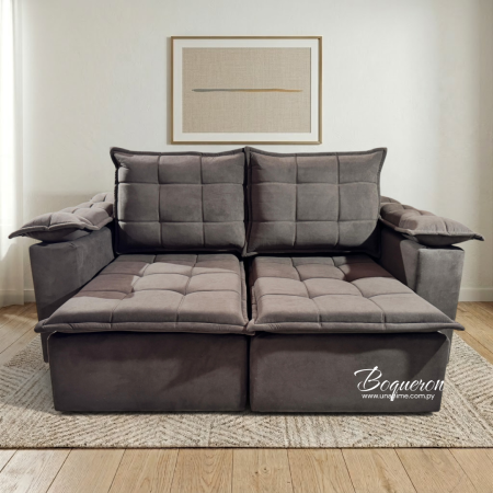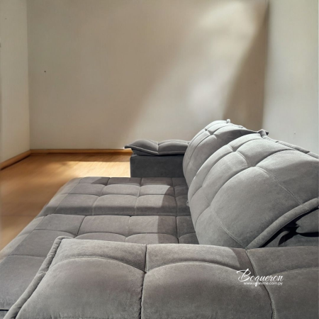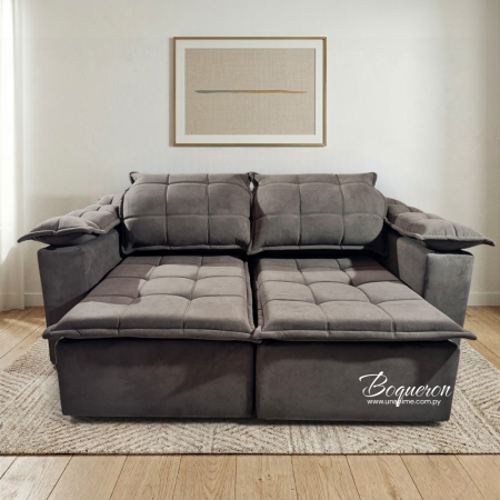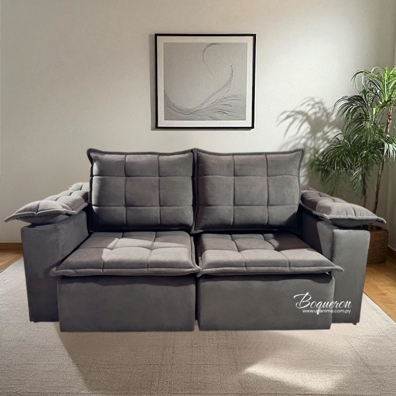 Elegancia, confort y versatilidad en un solo mueble. Tapizado de alta calidad con costuras acolchonadas. Asientos retráctiles. Perfecto para salas de estar, optimizando el espacio con su mecanismo ajustable.