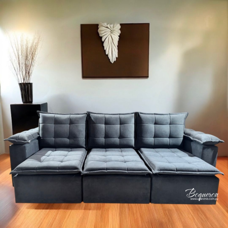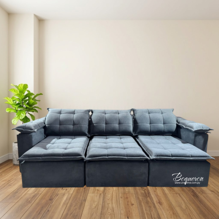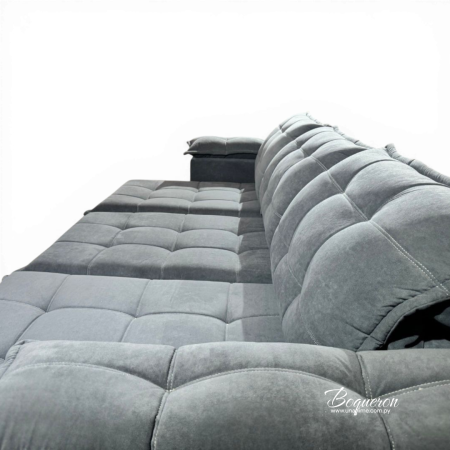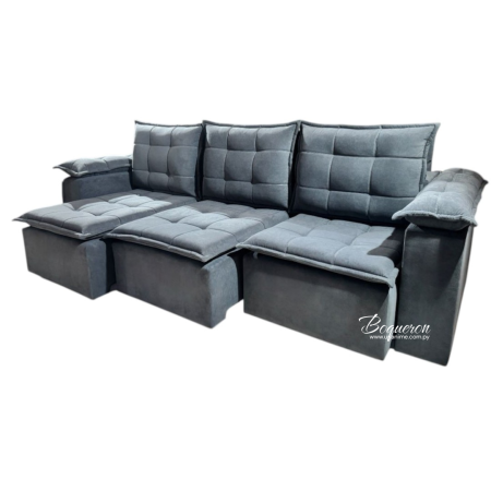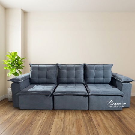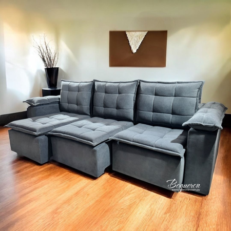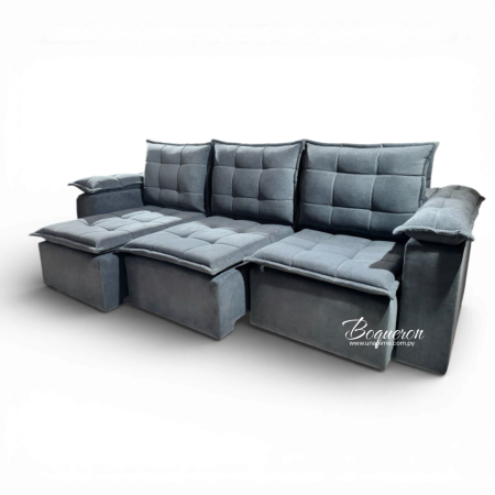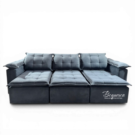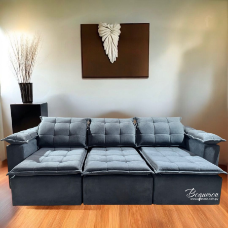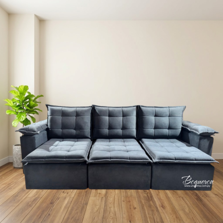 Elegancia, confort y versatilidad en un solo mueble. Tapizado de alta calidad con costuras acolchonadas. Asientos retráctiles. Perfecto para salas de estar, optimizando el espacio con su mecanismo ajustable.