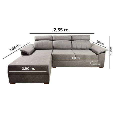 Largo: 2,55 m. / Profundidad: 1,02 m. / Prof Chaise: 1,83 m. / Altura: 0,98 m.