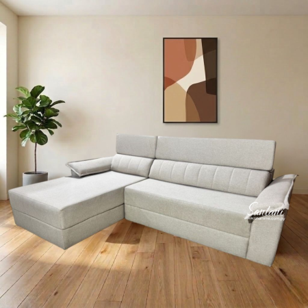 Diseño moderno y máximo confort en un solo mueble. Su formato en L con chaise ofrece más espacio para relajarte, mientras que sus respaldos acolchonados brindan una comodidad superior. Ideal para darle estilo, amplitud y calidez a tu living.