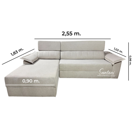 Largo: 2,55 m. / Profundidad: 1,02 m. / Prof Chaise: 1,83 m. / Altura: 0,98 m.
