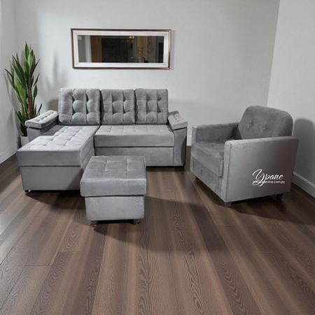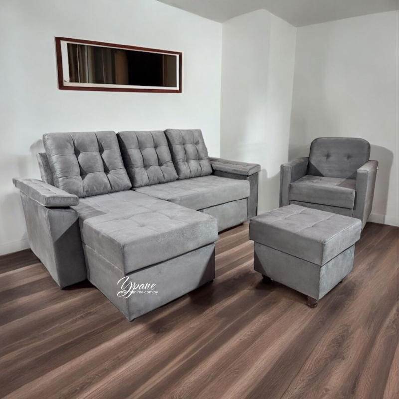 COMBO UNANIME YPANE GRIS + POLTRONA + PUFF