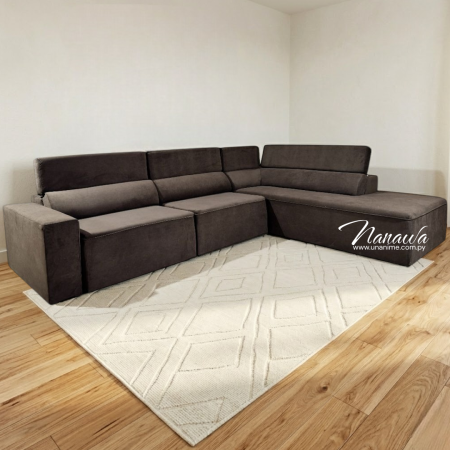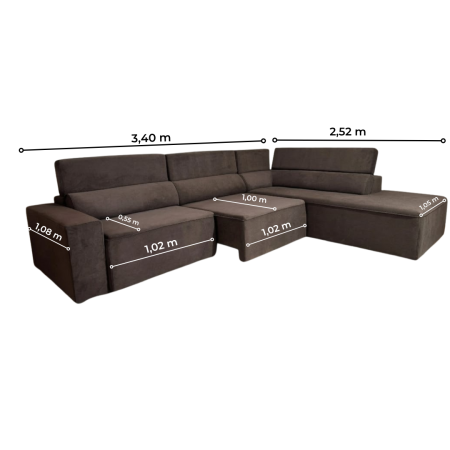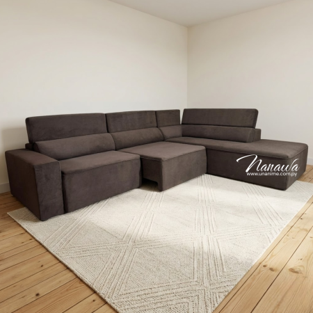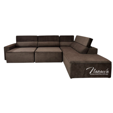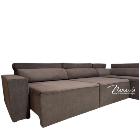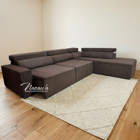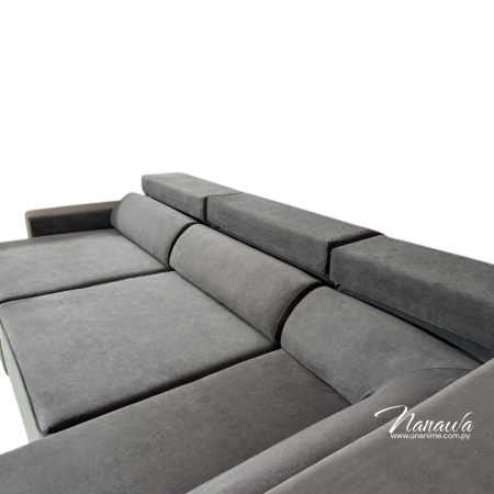 Nanawa combina diseño moderno y máximo confort en un formato esquinero ideal para espacios amplios y funcionales. Fabricado con espuma de alta densidad, garantiza firmeza, durabilidad y excelente recuperación, mientras que su tela semi impermeable 100% poliéster ofrece mayor resistencia y fácil mantenimiento. Perfecto para quienes buscan comodidad, estilo y calidad en un solo producto.
